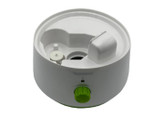 همانطور که در تصویر مشخص است در قسمت پایین دستگاه یک دکمه ولومی قرار داده شده که به وسیله آن میتوان رطوبت ساز را روشن و خاموش نمود و قدرت پرتاب کردن و پودر کردن آب را به صورت ولومی کم و زیاد کرد. منبع تغذیه بخار ساز سرد آدابتور برق می باشد.