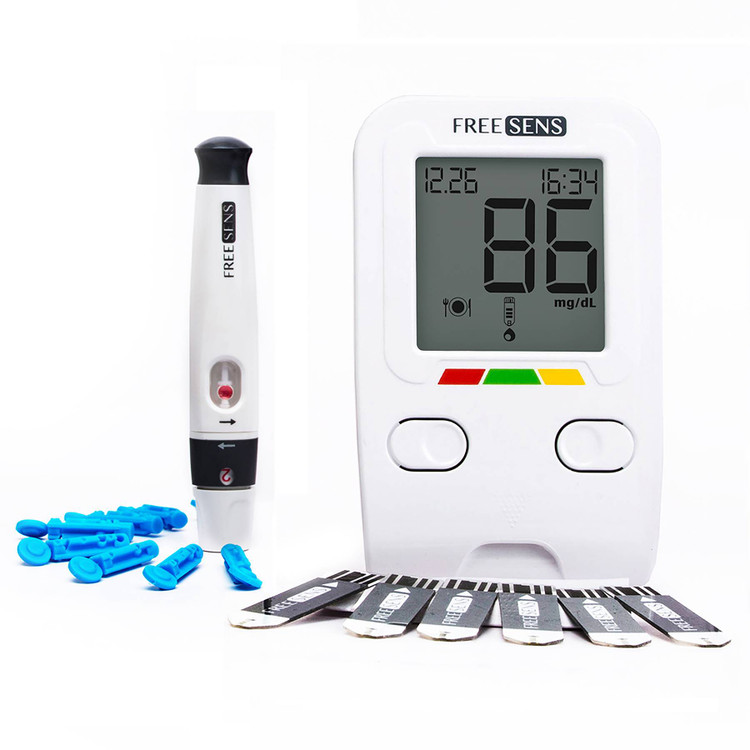 دستگاه تست قند خون فیری سنس FREE SENS همراه با ده عدد نوار رایگان