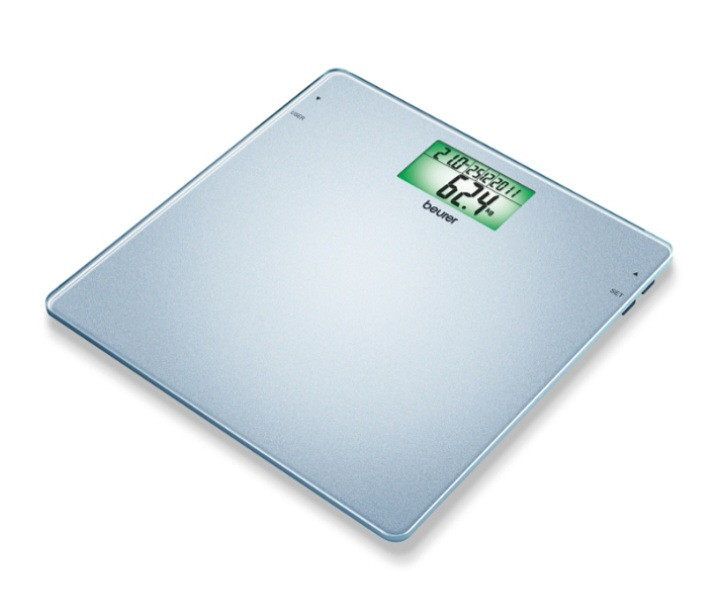 ترازوی beurerمدل GS42 با صفحه نمایش بزرگ همراه با نور آبی . دقت وزن کشی حداکثر ۱۰۰ گرم. تعیین میزان bmi افراد(مقدار چربی بدن) دارای دو سال گارانتی ، ساخت کشور آلمان