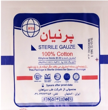 گاز طبی استریل ۸لایه پرنیان .ابعاد: ۱۰×۱۰سانتی متر مربع